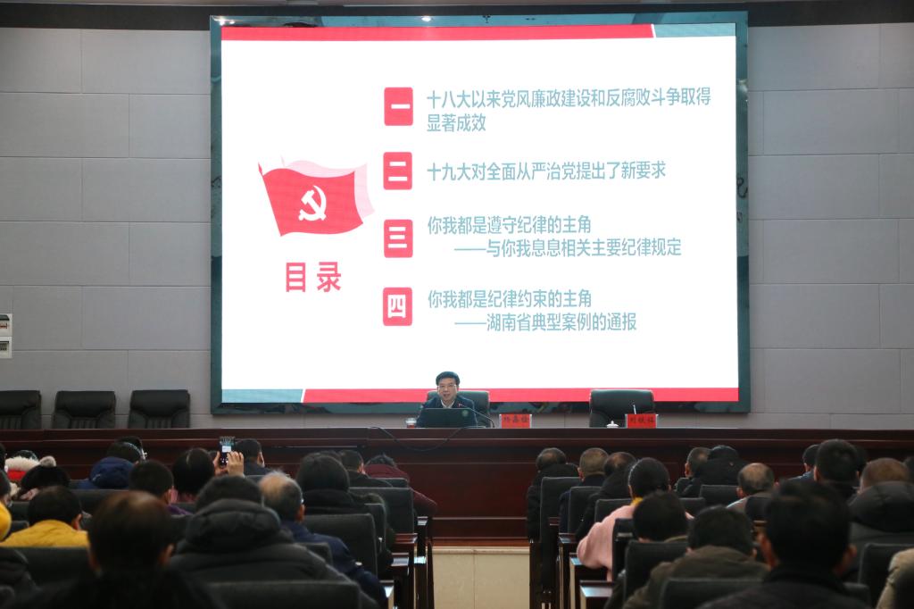 杨鑫铨同志作了题为《宁听骂声 不听哭声——推动学校党风廉政建设向纵深发展》的讲座。他主要从四个方面作了阐述:一是十八大以来党风廉政建设和反腐败斗争取得显著成效;二是十九大对全面从严治党提出了新要求;三是人人都是遵守纪律的主角——与大家息息相关的主要纪律规定;四是人人都是纪律约束的主角——2018年以来湖南省纪检监察方面的典型案例。他还强调,2019年KY官网纪检工作将持之以恒,一如既往,领导干部要强化知责履责方是“心中有责”的意识,要多“唠叨”、多提醒,学校将出台政策为敢于担当者撑腰,同时,也要帮助犯错误的同志重新“站起来”。