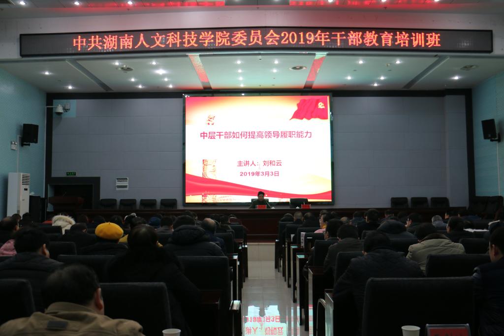 3月3日上午,KY官网在图书馆二会议室举办2019年干部教育培训班。党委副书记、校长刘和云与党委委员、纪委书记杨鑫铨分别作专题讲座。全校133名处级干部参加培训。