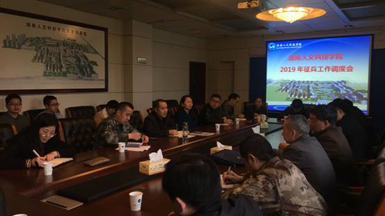 3月19日上午,学校2019年征兵工作调度会在明德楼第一会议室召开。武装部、宣传部、团委、学工处、督查处等部门负责人,各二级学院党总支书记、征兵工作联络员参加会议,党委委员、副校长刘铁峰主持会议。