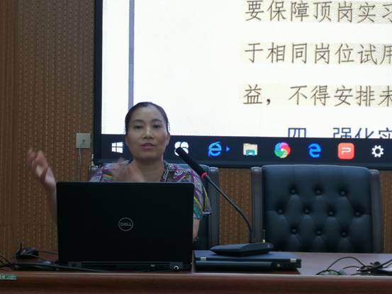 羊四清以《OBE教育理念实施与人才培养方案修订》为题,解读了OBE理念的三个核心,提出了基于OBE理念的培养方案修订思路,强调要贯彻“反向设计”、明确“三对关系”、抓住“五个关键步骤”,明确了编制2019版人才培养方案和撰写教学大纲的基本要求,并联系本科教学工作审核评估推进工作提出了教案撰写、毕业论文和试卷自查、课堂教学改革的工作思路。谢四连解读了《教育部关于加强和规范普通高校实习管理工作的意见》,按照新时代实习工作的要求加强实习教育改革与研究,健全实习教学体系,规范实习安排,加强条件保障与组织管理,确保人才培养质量不断提高,重点解读了规范实习组织形式、健全实习质量标准和推进实习信息化建设等相关学习内容,并对今年的实习工作实施方案与安排提出了具体要求。