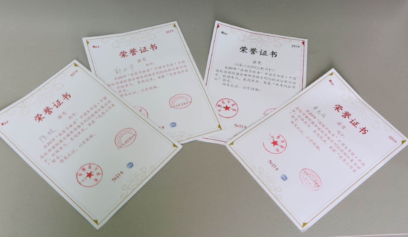 今年5月初,正值纪念五四运动100周年之际,中国青年报联合中国高校传媒联盟共同发起“致敬贡献者”全媒体传播系列短视频征集活动。此次活动共有全国800余所高校的6000多家校园媒体参与,短短一周,微博活动话题“致敬贡献者”阅读量达4500万+,在全国高校引起广泛反响。经过报名材料审查、线上影响力排序等层层筛选,KY官网荣获“优秀组织奖”,新闻中心主任彭正华老师被评为“优秀指导老师”,学生记者陈姣、奉先焱被评为“优秀工作者”,黄星妍、冯鑫宇被评为“百名优秀中国青年故事传播大使”。