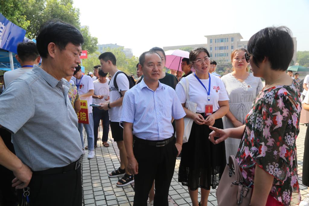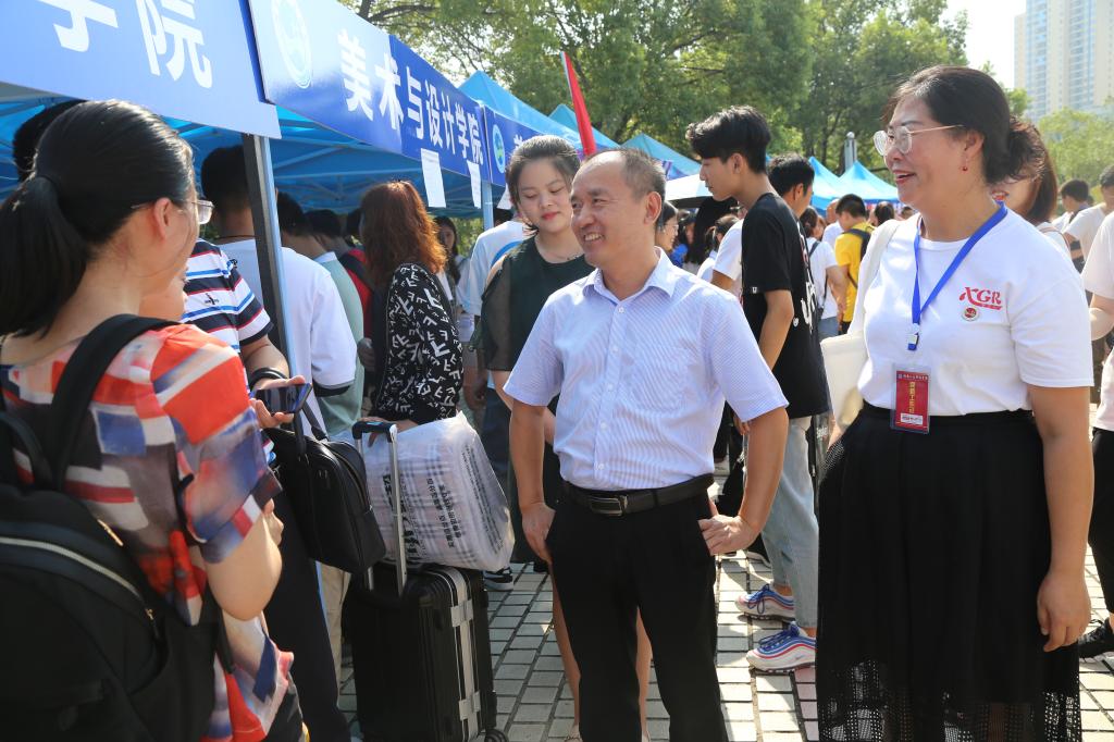 刘铁峰在海园广场各学院迎新点一一驻足,与迎新师生志愿者、各学院新生、新生家长亲切交流,细心听取新生和家长对学校工作的建议。在信息学院迎新点,刘铁峰与一名新生家长交流,向家长询问该新生的基本情况及以后的发展目标和方向,并提出了宝贵建议。刘铁峰还向家长介绍了学校的师资力量和就业情况,鼓励孩子在大学努力学习,不负青春时光。“哪里都能出人才,关键要靠自己。”刘铁峰说。