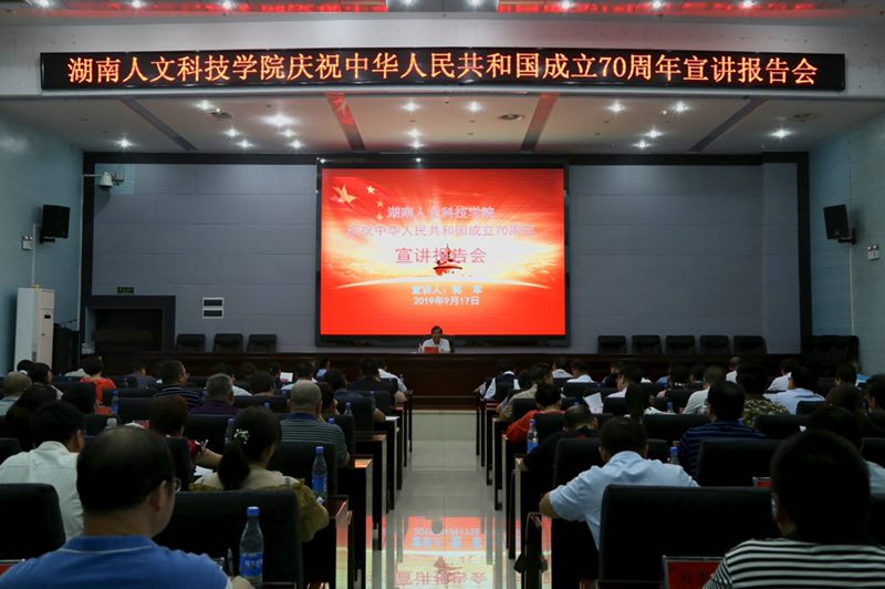 9月17日下午,KY官网在图书馆第二会议室举行庆祝中华人民共和国成立70周年首场宣讲报告会,学校党委书记郭军做主题报告,全校中层以上领导干部参会。