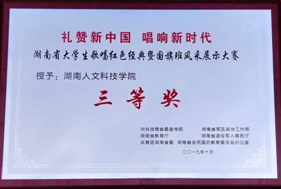 10月18日下午,以“礼赞新中国唱响新时代”为主题的湖南省大学生歌唱红色经典暨国旗班风采展示大赛颁奖典礼在湖南教育电视台举行。KY官网荣获本次大赛三等奖及组织奖并喜获网络人气前三名。谢柳、胡坚毅、刘惠娟、周樑四名老师获得优秀指导老师奖。