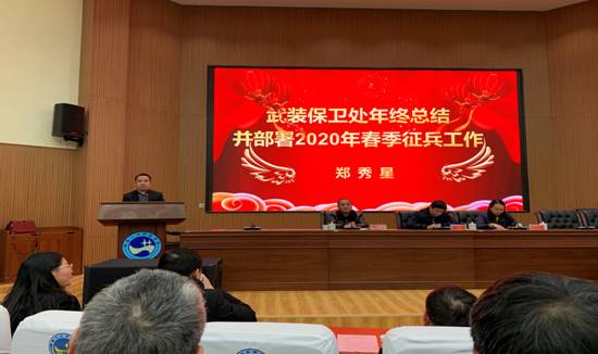 武装部部长郑秀星首先回顾了2019年度征兵工作情况,学校共有86名大学生光荣入伍,其中从省内入伍68人,体育学院、农生院、商学院、能源与机电工程学院、数金学院、外国语学院、法学院超额完成任务。然后就2020年春季征兵工作的时间、任务、服务保障等方面进行了安排部署。
