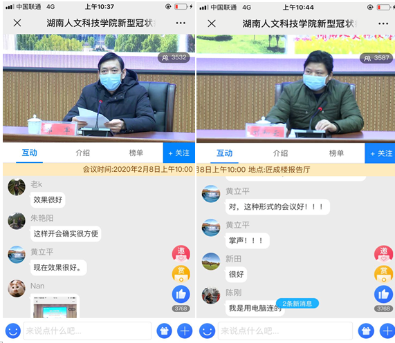 党委书记郭军表示,疫情发生以来,学校深入贯彻落实习近平总书记、党中央关于抗击新型冠状病毒感染的肺炎疫情防控工作的重要指示精神,全面落实教育部和省委、省政府及省教育厅、娄底市委政府的工作部署,在疫情防控上做了大量有成效的工作,目前学校疫情防控整体情况良好。