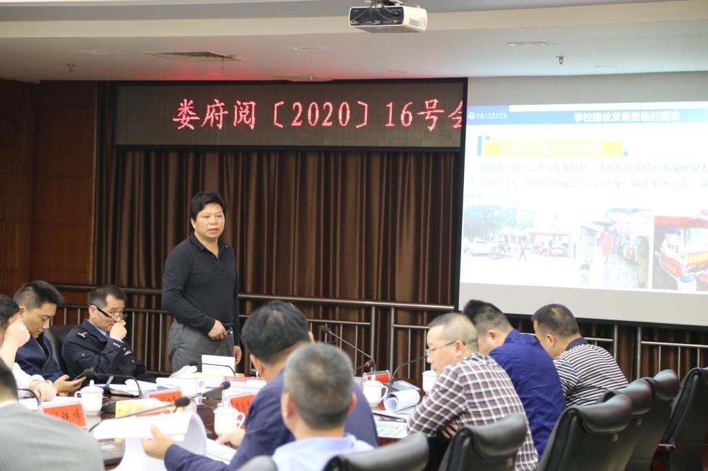 4月17日下午,娄底市政府副秘书长邓敏炉主持召开娄府阅〔2020〕16号会议纪要工作落实推进会暨相关方案评审会,研究KY官网北大门建设、KY官网与娄底职院南校区家属区之间的围墙修建等工作。