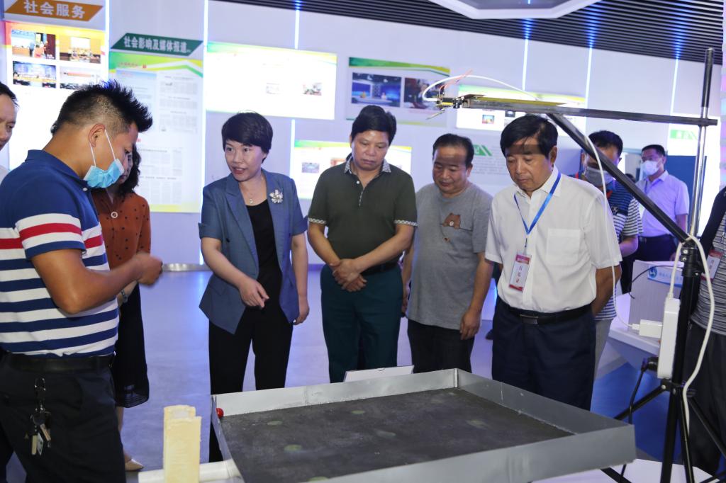 “这个项目创新点在哪里?”“这个获全国一等奖确实不容易”……在创新创业学院展览室,张希慧与陈致印博士、谭周文博士、胡东博士等指导老师亲切交流。