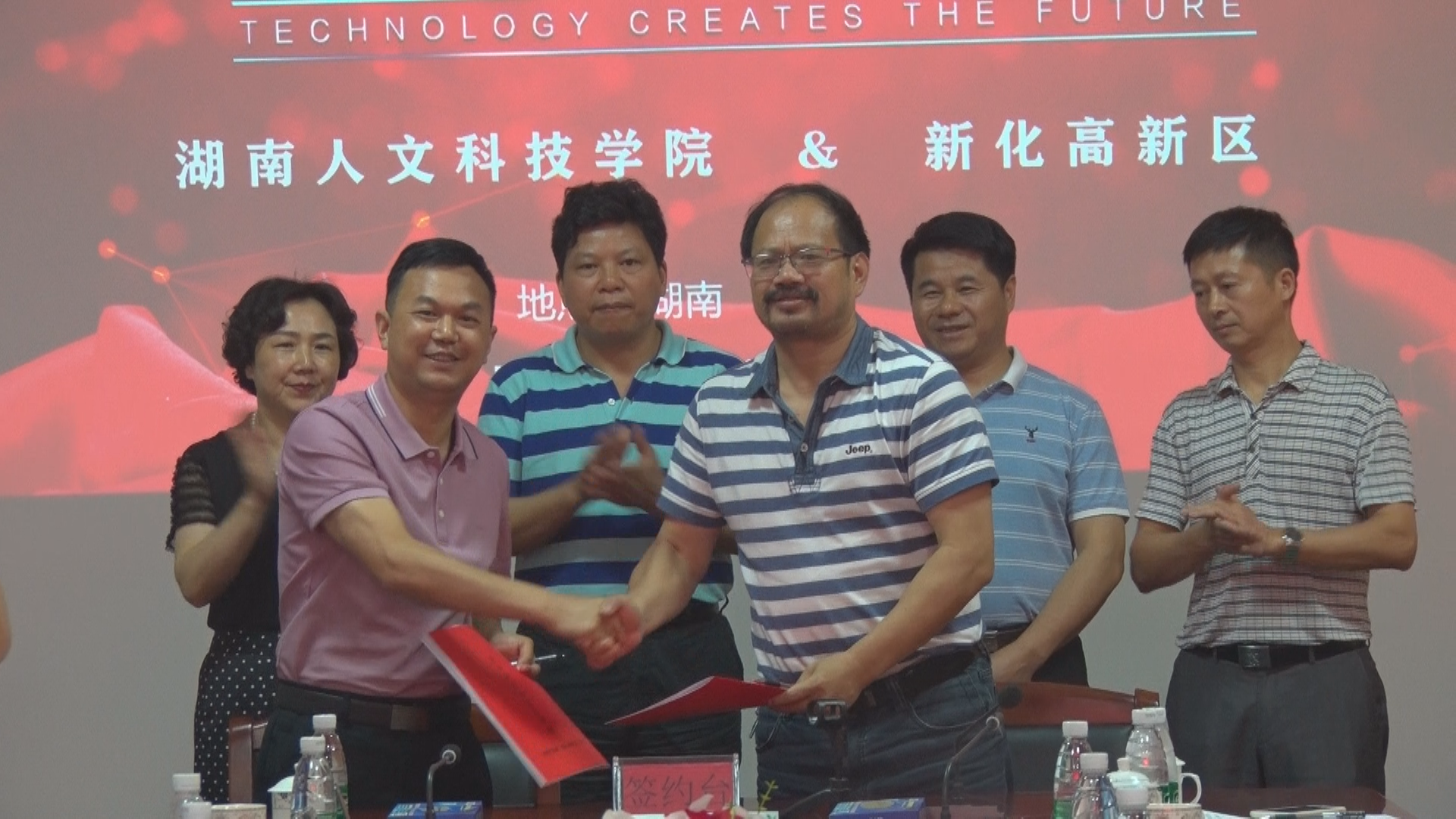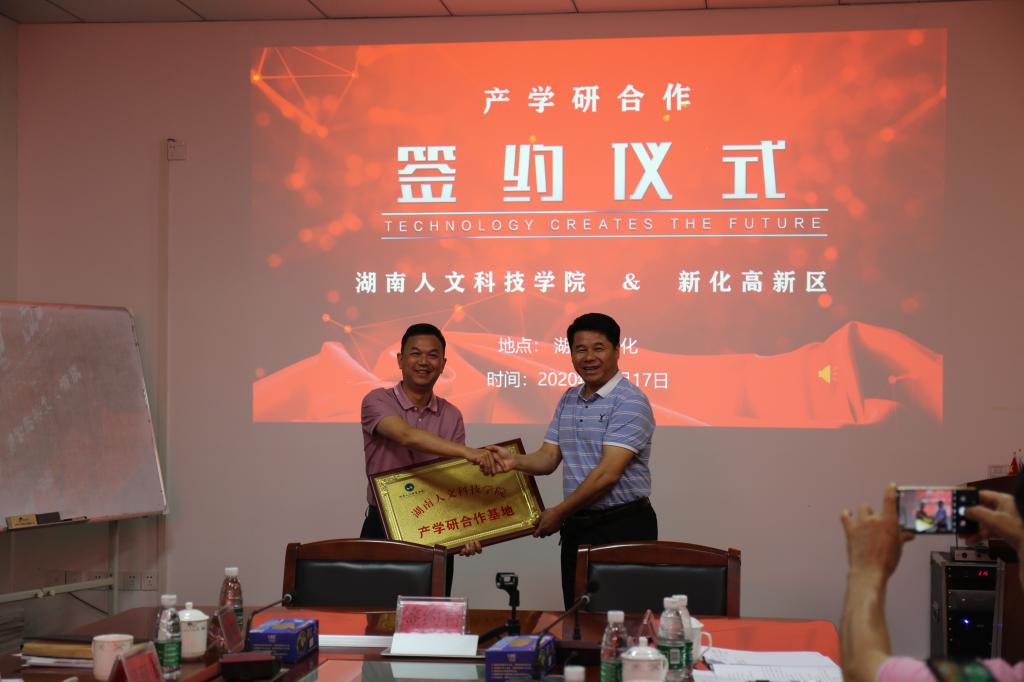 校地校企合作处处长黎建辉代表学校与新化县高新区签订产学研合作协议