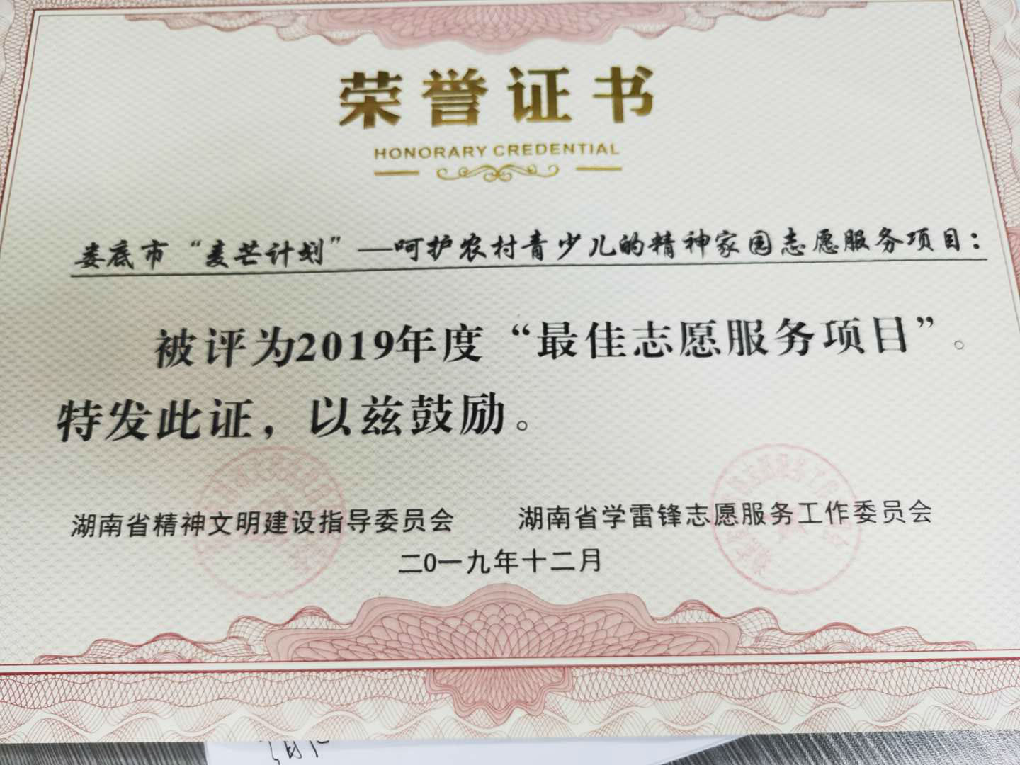 8月20日,湖南省宣传部、文明委、志工委对2019年学雷锋志愿服务先进典型进行了表彰。此次表彰对象分为“最美志愿者”、“最佳志愿服务组织”、 “最佳志愿服务项目”和“最美志愿服务社区”四类,其中第一类100名,后三类各20个。KY官网马克思主义学院组织实施的“麦芒计划”——呵护农村青少儿的精神家园志愿服务项目荣获“最佳志愿服务项目”,并被推送代表湖南省参与全国“最佳志愿服务项目”评选。