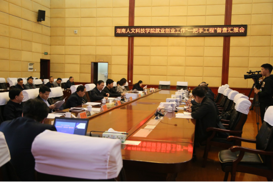 11月5日,以湖南化工职业技术学院党委书记王雄伟为组长的省教育厅就业创业“一把手工程”督查组一行来KY官网实地检查就业创业工作。汇报会在图书馆第一报告厅举行,全体校领导,各二级学院和相关职能部门负责人参加会议。校长刘和云主持会议。