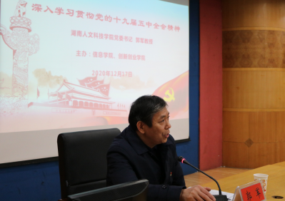 12月17日下午,校党委书记郭军在养根楼报告厅为信息学院、创新创业学院全院师生党员讲授“深入贯彻党的十九届五中全会精神”专题党课。讲座由信息学院党总支书记谭甲凡主持。