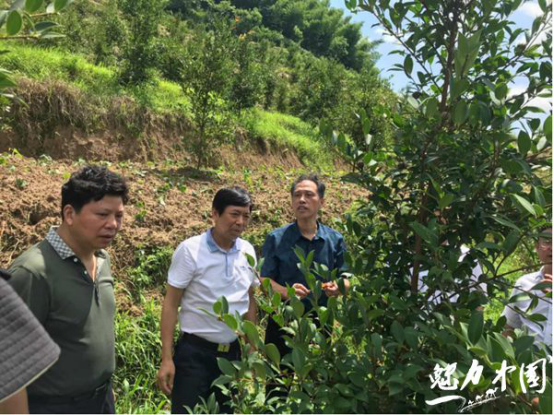 校领导现场查看油茶林生长态势