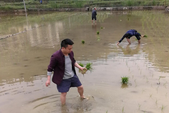 工作队员帮村民插秧