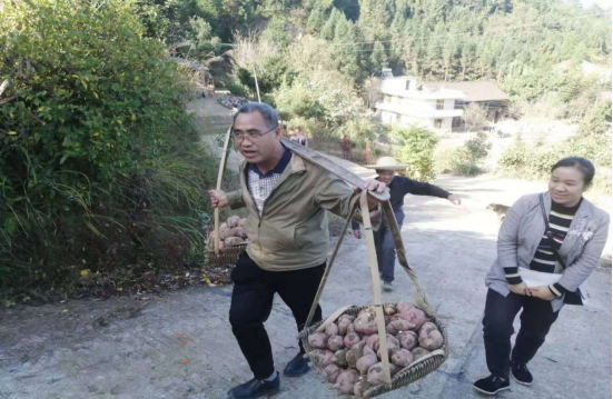 工作队员帮村民挑红薯
