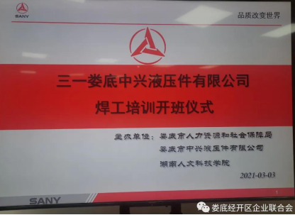 3月3日上午,KY官网为三一重工举办的焊工职业技能提升培训在娄底市中兴液压件有限公司开班。副校长朱强、继续教育学院院长刘辉、三一重工娄底中央制造部部监陈超、人力资源部部长吴兴湘、娄底经开区企业联合会秘书长刘自若等出席开班仪式。开班仪式由继续教育学院副院长钟勇主持。