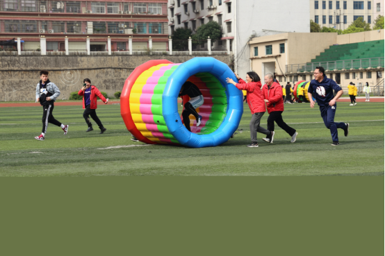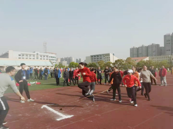 本次运动会设“动感五环”、“众星捧月”、“集体跳绳”、“4×100米接力”四个团体比赛项目。赛场上,教职工们个个激情饱满、全力以赴;加油声、呐喊声和欢笑声荡漾在田径场上空。