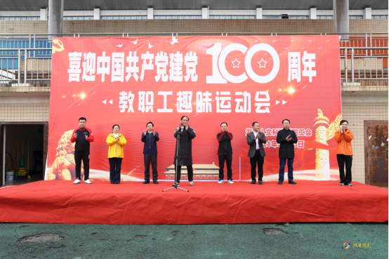 校长刘铁铭庄严隆重宣布“喜迎中国共产党建党100周年”教职工趣味运动会开幕。