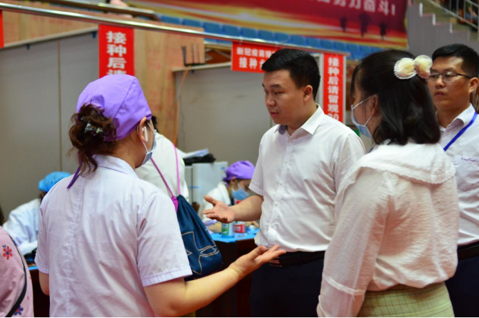 新冠疫苗接种工作开展期间,校党委书记刘和云、校长刘铁铭、副校长刘铁峰、曹鑫等校领导都亲临现场,检查指导工作并带头接种疫苗。在接种疫苗现场,刘和云与工作人员亲切交谈,详细询问了接种流程、疫苗管理、异常反应监测、处置救治和接种完成进度等情况。刘铁铭指示,要加强与娄星区卫健局等单位的联系,争取更多支持。他向接种疫苗的师生表示感谢,向医务人员和志愿者表示敬意。他强调,师生自觉接种疫苗,既是对自己的生命安全和身体健康负责,更是对全校师生、对社会负责。