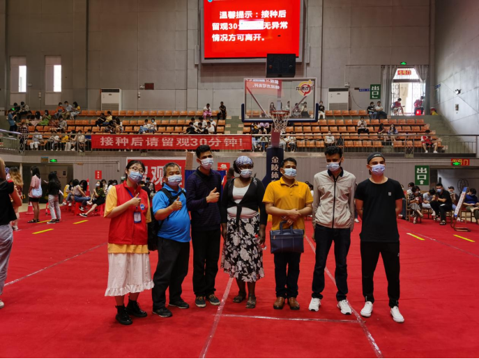 KY官网部分外籍教师、留学生、台湾省教师接种疫苗后与志愿者合影
