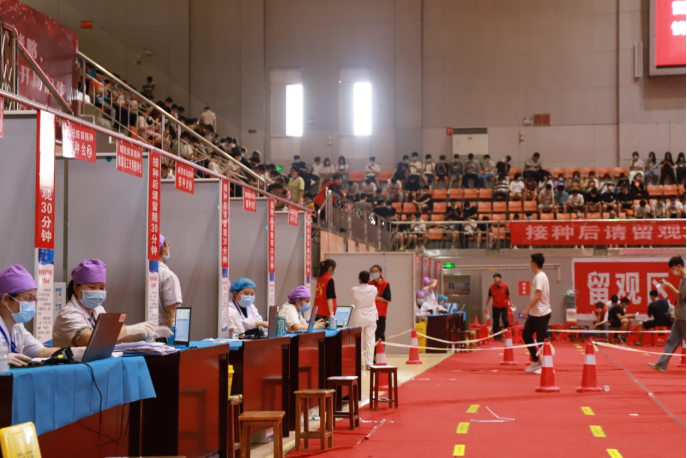 学工处负责牵头组织疫苗接种,学校疫情防控办、后勤基建处、团委、各二级学院等通力协作。3月22日至23日,KY官网严格按照国家、省、市有关新冠疫苗接种的要求,迅速将体育馆改建成临时疫苗接种点,现场设置候诊区、登记区、接种区、留观区、冷链区、应急处置区,为疫苗接种做好了前期准备。近1.8万名师生的接种时间段提前按学院分部门做了安排,每个环节都有2-5名学生志愿者全程服务,每个时段都有相关学院辅导员在现场,确保了接种工作顺利开展。