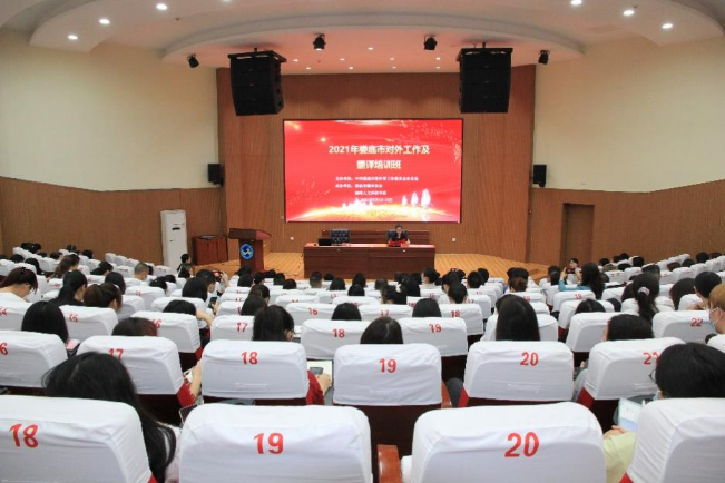 5月12日上午,娄底市对外工作及翻译培训班在匠成楼报告厅举行开班仪式。此次培训班由中共娄底市委外事工作委员会办公室主办、娄底市翻译协会和KY官网承办。校党委委员、副校长陈志国致欢迎辞,娄底市委第一副秘书长、外事办主任、二级巡视员吴德华讲话,娄底市翻译协会会长、外国语学院院长胡瑾作娄底市翻译协会2020年度工作报告。参加培训的学员有市直对外部门、县市区委外事办相关负责人、涉外企事业单位相关人员和市翻译协会会员。