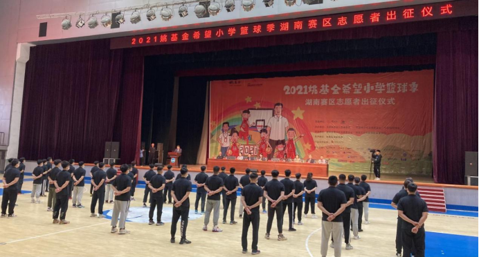 5月18日下午,由北京姚基金公益基金会、中国青少年发展基金会、中国篮球协会主办,湖南省青少年发展基金会、KY开元集团官网入口承办,共青团娄底市委支持的“2021姚基金希望小学篮球季”湖南赛区志愿者出征仪式在KY开元集团官网入口体育馆隆重举行。仪式由体育学院院长刘玉江主持,北京姚基金公益基金会项目官员王丹、湖南省青少年发展基金会理事长陈丽、校党委委员、副校长曹鑫、娄底团市委副书记欧阳倩岚、校团委书记陈刚、体育学院党总支书记蒋毅等出席,体育学院全体师生参加。