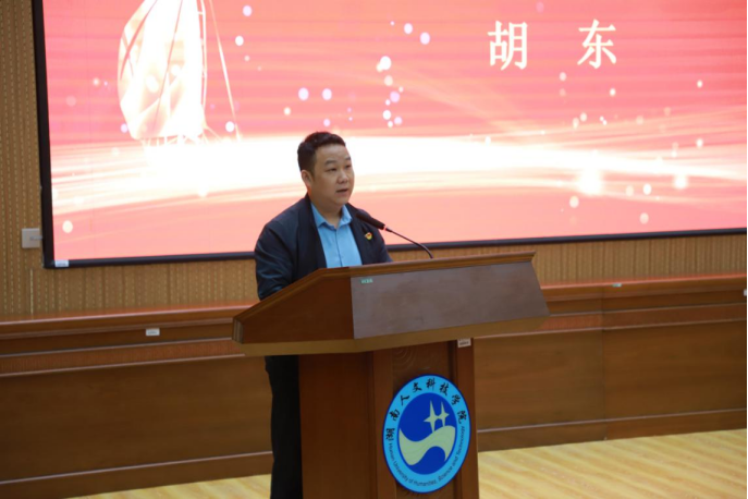 院长胡东在毕业典礼上发言,他代表学院对全体毕业生同学表示热烈的祝贺,对为毕业生的成长成才倾注心血的老师们表示崇高的敬意,并向对学院工作给予大力支持的家长以及社会各界朋友们表示衷心的感谢。
