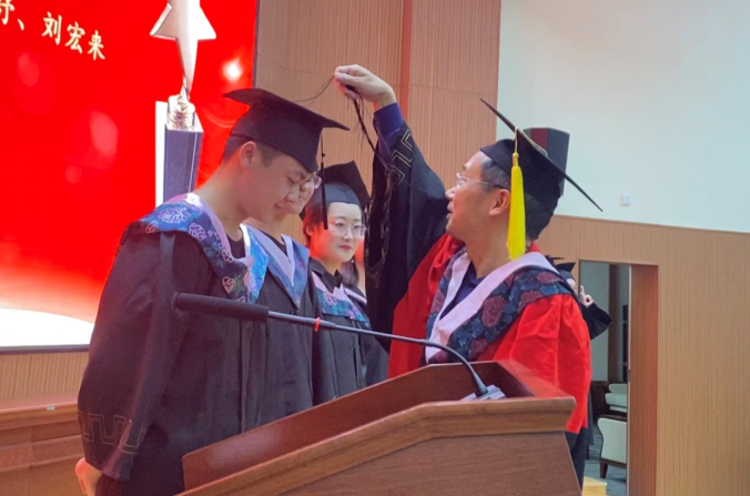 倪正芳诗意地将经典名著与人生哲理结合,他寄语毕业生们“看破红与黑,不做变色龙,警惕名利场,不做局外人,拼搏一千零一夜,终将走向伟大前程”倪院长祝愿同学们在未来的道路中,能够专注每一步,走好每一步。随后,倪院长为毕业生代表拨穗