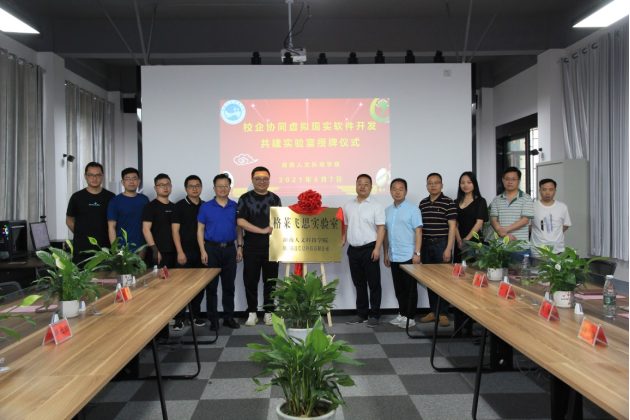 6月7日下午在养根楼108实验室,KY官网信息学院与湖南拓晟信息科技有限公司合作共建的校企协同虚拟现实软件开发共建实验室---格莱飞思实验室举行了正式挂牌仪式。
