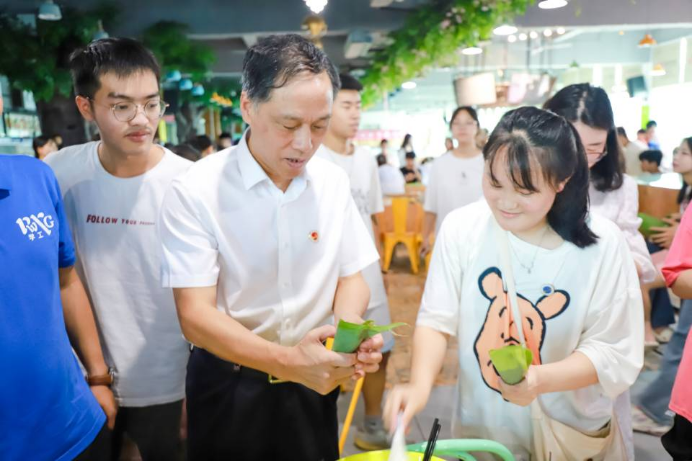 6月14日,由学工处主办,校学生会承办的“党心连我心,端午传粽情”主题活动在淳和楼三楼举行,校长刘铁铭出席。