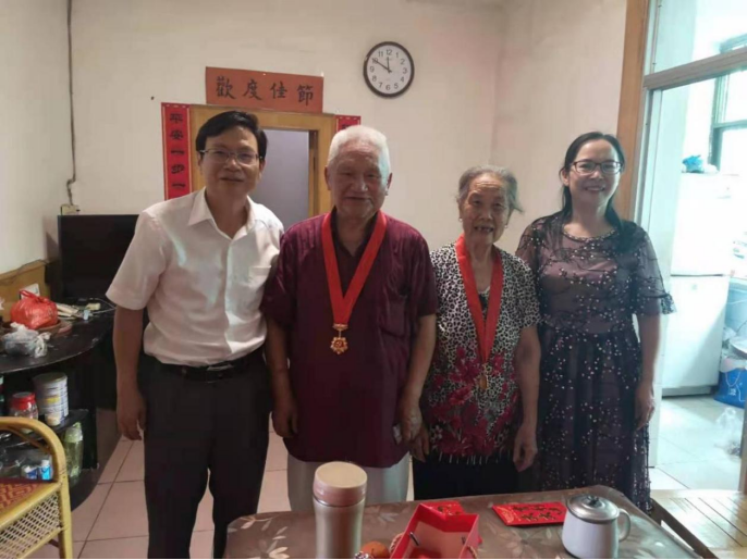 党委书记刘和云来到93岁高龄的离休老干部武鉴铭家中,转达了学校党委对离退休老同志的亲切问候,感谢他为党的教育事业奋斗了一生,叮嘱老人保重身体,并亲自为武老戴上了“光荣在党50年”纪念章。党委副书记、校长刘铁铭来到谢存八、邓春林夫妇家中亲切慰问,祝贺夫妇双双被授予“光荣在党50年”纪念章,向他们致以节日问候和祝福,感谢他们为学校发展作出的重要贡献。党委副书记李军林来到谢永华的家中,关切地询问谢老的近况,与他唠家常、问需求、话发展,认真听取老同志的意见建议,亲自为谢老戴上了“光荣在党50年”纪念章。