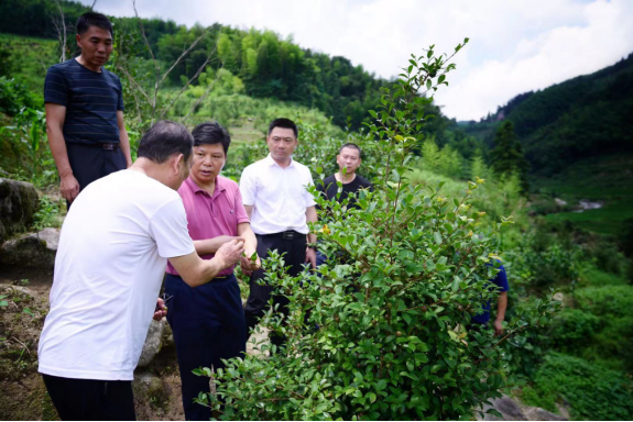 座谈会结束后,刘和云一行深入油茶基地,对油茶基地的发展及存在的问题进行深入的分析,查找村级产业发展的短板,解决群众急难愁盼问题,贯彻落实省委组织部“我为群众办实事”精神。活动特邀康林峰教授现场指导油茶栽培技术,就相关技术要点进行了手把手、一对一传授。最后,刘和云强调,要坚持以发展产业为主导,产业兴旺是巩固脱贫攻坚成果的重要抓手,是实施乡村振兴战略的力量来源,今后学校要为长石村多开展送技术进村活动,为长石村的乡村振兴贡献KY开元集团官网入口力量。