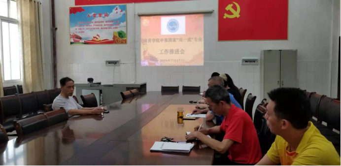 体育学院院长刘玉江、党总支书记蒋毅分别就国家“双一流”专业申报前期工作的推进情况及工作中存在的困难做了详细汇报。