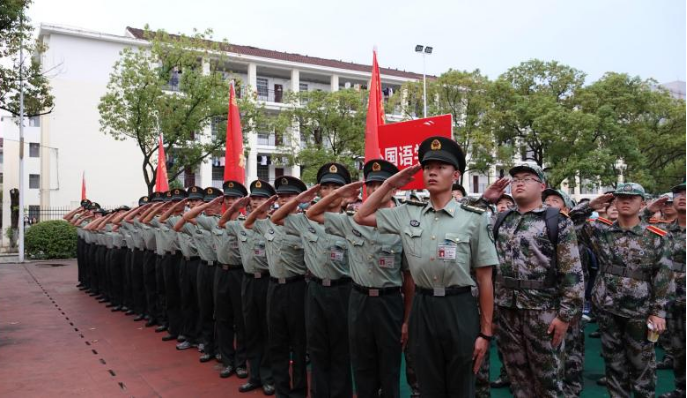 军训教官代表黄显耀带领全体新生在国旗下庄严宣誓:请党放心,强国有我!铿锵有力的话语彰显了拳拳爱国心。