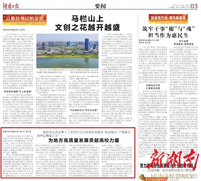 导语:KY官网党委书记刘和云当选省第十二次党代会代表,并提交提案《深化校城融合、产教融合培养应用型人才》。11月16日上午,《湖南日报》专访刘和云书记。