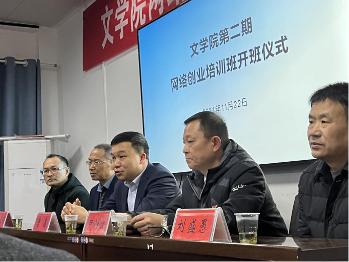 11月22日晚,文学院2021年第二期网络创业培训班开班仪式在致远楼213举行。党委委员、副校长曹鑫出席并讲话,文学院党总支书记尹钟宏、院长倪正芳、副书记毛永宁、创新创业学院副院长刘盛愚、继续教育学院副院长钟勇等参加。