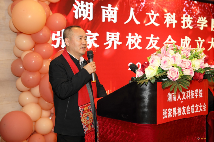 刘铁峰在讲话中指出,43年来,学校在社会各界的支持关心下,办学规模不断扩大,学科专业建设实现新突破,学科竞赛成绩位列全省同类院校前列,创新创业工作特色鲜明,服务地方能力不断增强,这些突出的办学成绩得益于全校师生的共同努力,也与广大校友的关心支持和无私奉献密不可分。他希望新当选的张家界校友理事会和广大张家界校友在校友总会的指导下,不断加强自身建设,在校友与母校间架起交流合作的桥梁,同时积极投身张家界经济社会发展,贡献人文科技人的聪明才智,展现人文科技人的良好风貌。