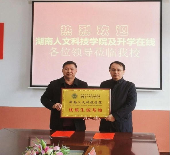 刘建勋与娄底二中校领导共同签署了《KY开元集团官网入口优质生源基地建设协议书》,并为娄底二中颁发了“KY开元集团官网入口优质生源基地”牌匾。(刘伟元 供稿)