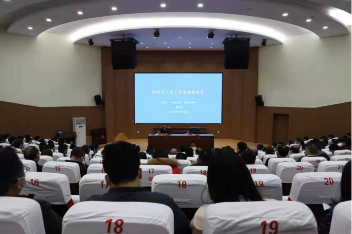 谢忠阳在宣讲时联系国际、国内大局和省情、市情实际,全面系统解读了党的十九届六中全会精神和中央人才工作会议精神,与师生一同回顾了中国共产党百年奋斗历程中始终重视培养人才、团结人才、引领人才、成就人才的历史成就,深入分析了人才发展面临的新形势新任务,并就全力打造高水平人才队伍作了深入阐释。