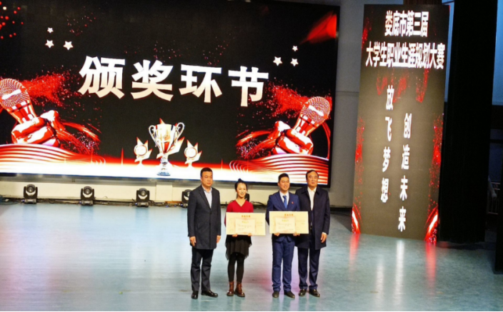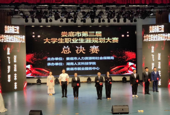12月22日晚,娄底市第三届大学生职业生涯规划大赛总决赛在逸夫楼音乐厅举行。校党委委员、副校长曹鑫,娄底市人社局党组成员、副局长曾春谷、陈轶强等领导莅临现场,娄底市各高校师生共300余人参加。大赛邀请了湖南农业大学就业创业教研室主任邓艳,共青团湖南省委青年创新创业指导专家杨荣周,大汉国际工匠院校企合作中心主任易红梅,娄底市人力资源及社会保障局职业能力建设科科长孙娜、劳动关系科副科长王文斌、娄底市财政局社保科副科长陈敏智、双峰县就业服务中心主任赵爱龙担任评委。