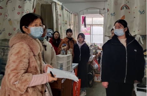 机关教辅单位负责人深入阳光公寓和3栋学生宿舍,向同学们宣讲疫情防控知识,明确告知疫情防控的相关要求,及时指出检查中发现的问题,解答学生的提问。并给学生送出口罩、洗手液等防疫物质。(袁微 供稿)