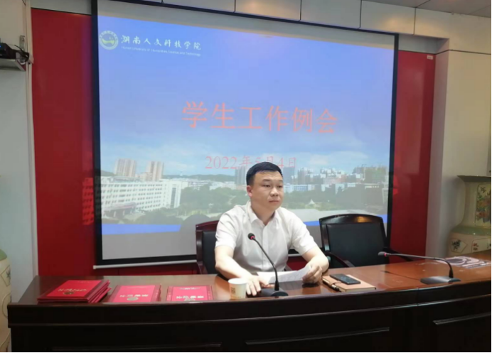 学生工作处处长李玲军安排了常态化疫情防控、辅导员素质能力大赛、毕业生离校工作等;创新创业学院院长刘红燃说明了毕业生就业工作;校团委书记陈刚通报了青马骨干班、团学干部网上培训等工作;保卫处副处长肖奔就征兵和校园安全问题进行了说明。