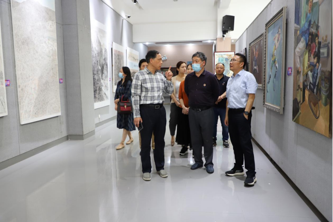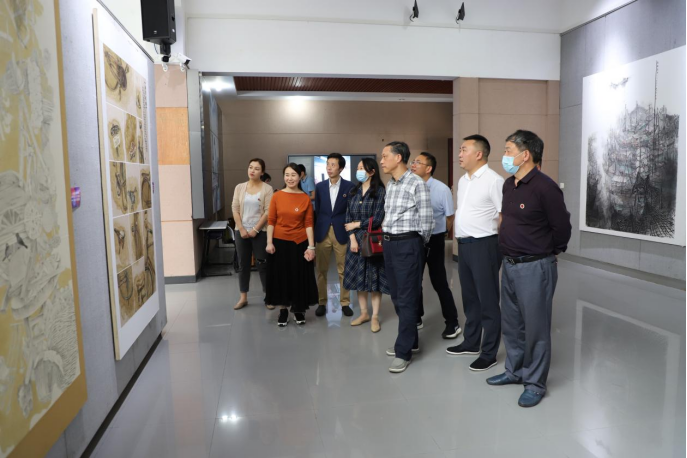 5月6日至5月10日,美术与设计学院美术学专业2022届毕业生作品展在逸夫楼二楼展厅开展。5月9日上午,校长刘铁铭,副校长刘建勋亲临作品展现场指导,宣传统战部常务副部长谢柳,教务处处长向国红,党政办主任易俊,美术与设计学院领导班子陪同。