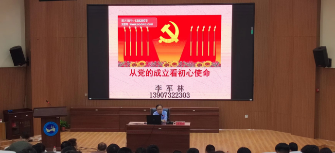 李军林以《从党的成立看初心使命》为题给毕业生党员上了一堂意义深远的党课。他首先强调共产党人的初心和使命就是为中国人民谋幸福,为中华民族谋复兴。接着,他结合马克思主义唯物史观和丰富详实的党史资料以及自己的研究,从一大纲领与初心使命、一大时势与初心使命、一大代表与初心使命等三个维度,系统回顾了中共一大开会时间、召开地点、参会代表、全国党员人数、一大的文件等历史详情,全面介绍了一大召开时内有北洋军阀黑暗统治、外有帝国主义列强环伺的国内国际形势,深刻剖析了第一次世界大战及十月革命的影响、新文化运动带来的思想解放、五四运动及其对马克思主义传播的促进等历史背景,深刻阐释了“红船精神”。军林书记勉励毕业生党员赓续共产党人精神血脉,勇于肩负新时代历史使命,志存高远、脚踏实地,积极投身到强国伟业中,在建设科技强国和推动民族复兴中绽放青春梦想。