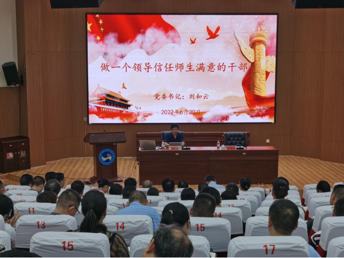 在处、科级干部集中培训中,校党委书记刘和云有针对性地指导干部们要正确认识校情、正确认识自己,正确处理好管理与服务、全局与局部、对外与对内等九大关系,争做一个领导信任师生满意的干部;党委副书记、校长刘铁铭以“喜迎二十大,奋进新征程——凝聚共识,推进学校高质量发展”为题,带领大家认清全省同类院校激烈的竞争形势及学校的差距和短板,号召干部们解放思想、担当作为,以改革求变来破解学校发展难题,推进学校高质量发展;党委副书记李军林主讲“百年党史的主题与主线”,在“七一”建党节当天带领大家重温百年党史,汲取砥砺奋进的智慧力量,激励干部干事创业担当作为;党委委员、纪委书记凌艳平以“扬清风正气,创清廉人文”为主题,倡导大家弘扬清廉的传统美德和党的优良作风,自觉遵守《中国共产党廉洁自律准则》,以清风正气涵养清明政风、清新学风、清正教风、清净校风的清廉校园。