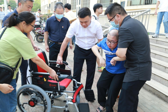 (曹鑫代表学校赠送电动轮椅)
