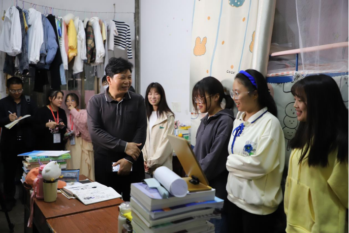 其他校领导和中层干部也分别到所联系学生寝室开展宣讲。领导们与学生深入交流,扎实推动党的二十大精神在青年学子头脑中落地生根,同时帮助解决学生生活学习中的实际困难。(文/新闻中心 王业良 陈依婷 欧家)
