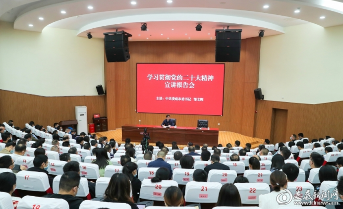 邹文辉指出,党的二十大,是在全党全国各族人民迈上全面建设社会主义现代化国家新征程、向第二个百年奋斗目标进军的关键时刻召开的一次十分重要的大会。深入学习宣传贯彻党的二十大精神是当前和今后一个时期的首要政治任务。邹文辉从党的二十大的主题、主要成果,过去5年的工作和新时代10年的伟大变革,马克思主义中国化时代化,中国式现代化,全面建设社会主义现代化国家的目标任务,坚持党的全面领导和全面从严治党,应对风险挑战等7个方面作了全面宣讲和深入阐释。