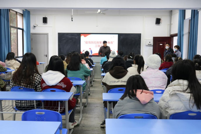为将上级相关精神和娄底疫情防控政策落实到位,扎实筑牢校园防控防线,营造团结一心共克时艰的良好氛围,11月30日下午,校领导和中层干部利用课前十分钟到各班开展疫情防控政策宣传教育三联系。